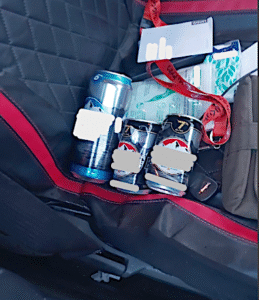 Cans of beer on passenger seat