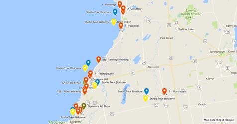 Lake Huron communities are rich in culture and artists who work in a wide variety of mediums from watercolour and oil paintings to woodworking, pottery and photography to jewelery making.